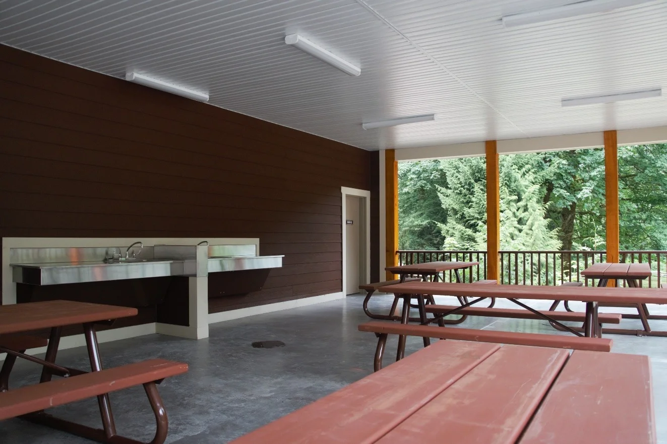 Our cozy, wheelchair accessible Maple Bay cabins, are suitable for up to five people with one queen bed, one set of single bunk beds and one single bed. Located on the edge of Cultus Lake, in Cultus Lake Provincial Park, they have levelled entry ways and ramps and include heating, lighting and a power outlet (110 volts). Each 200 sq ft cabin has its own private covered patio complete with picnic table and stainless steel cooking surface. Guests will need to provide their own bedding, dishes, pans and cooking stove.